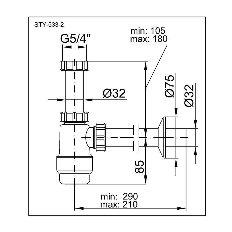 • STY-533-2 Sifon umyvadlový celoplastový, odtok 32