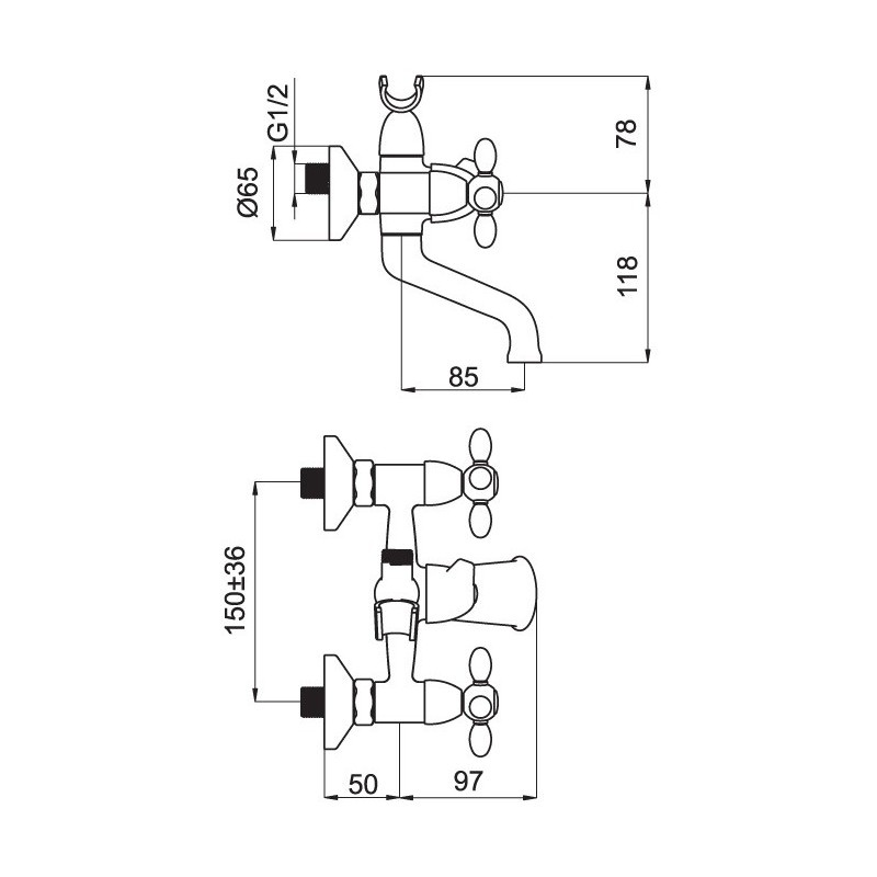 VENEZIA V-1 CROSS baterie vanová nástěnná Rubineta
