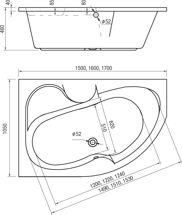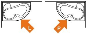 Pravá varianta vany. Výběr správné orientace vany je nezbytně nutný, proto jej prosím neopomíjejte! V případě jakýchkoliv pochybností volejte na naši infolinku.