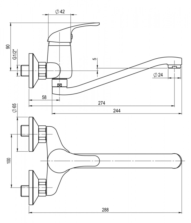 A10 30 20/100 Slim Dřezová nástěnná baterie, ramínko ploché S 250 mm JB Sanitary