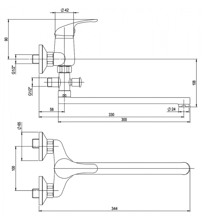 • Nástěnná dřezová a umyvadlová baterie 100 mm s příslušenstvím, ramínko 300 mm