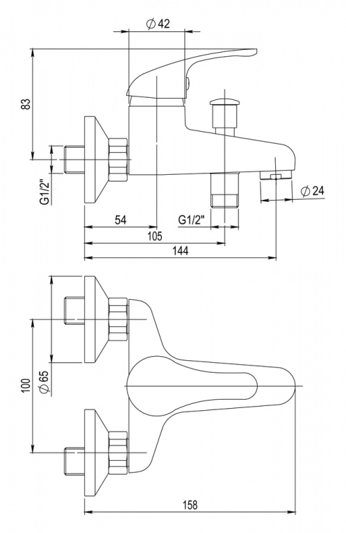 • Vanová nástěnná baterie 100 mm bez přílušenství
