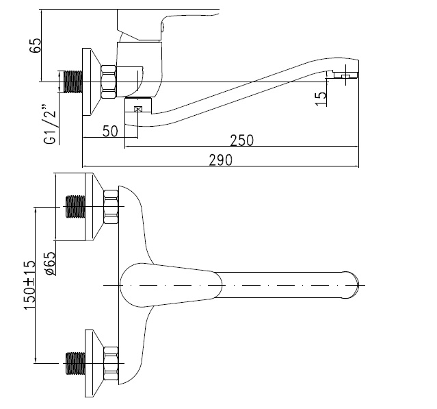 D10 35 20/150 Tira Dřezová nástěnná baterie, ramínko ploché S 250 mm JB Sanitary