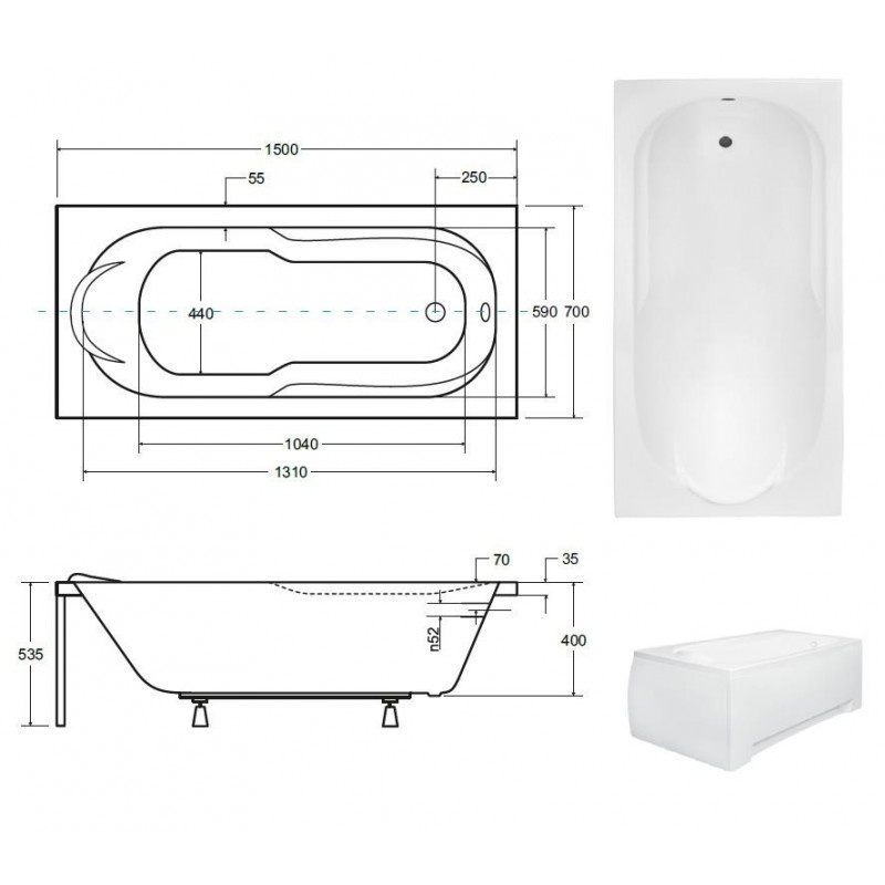 VINDOBONA 150 x 70 Obdélníková vana Olsen-Spa