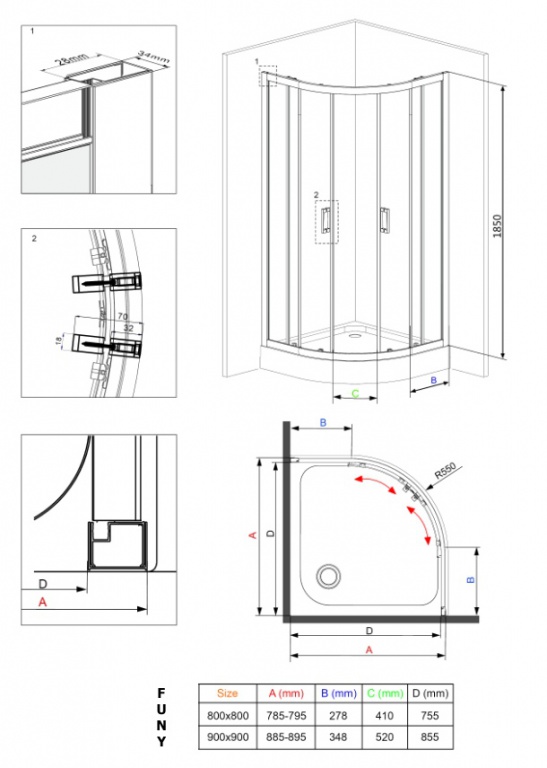 Zástěnu můžete instalovat jak na čtvrtkruhovou vaničkou o rozměru 80x80 (radius R55), tak přímo na vydlážděnou podlahu vaší koupelny.