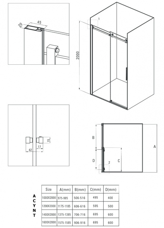 Posuvné sprchové dveře ACYNT v kombinaci s pevnou stěnou snadno zaujmou svým atraktivním a elegantním vzhledem. Jednoduché linie bezrámové konstrukce, kde krásně vyniknou velké plochy čirých bezpečnostních skel o síle 8 mm, bude slušet každé koupelně.