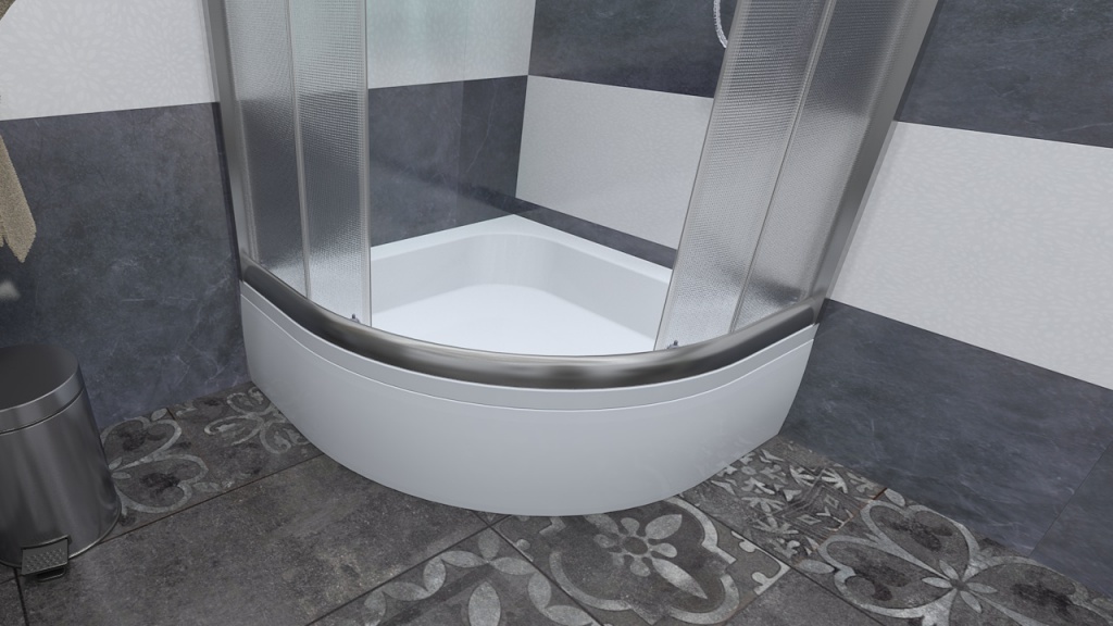 Zástěna FUNY je společně s hlubší čtvrtkruhovou vaničkou ANDA o výšce 26 cm, skvělou volbou pro každou koupelnu. Vanička je vyztužena spodním rámem a díky stavitelným nožičkám snadno dostanete "do vodováhy" :) Přední krycí panel součástí setu.
