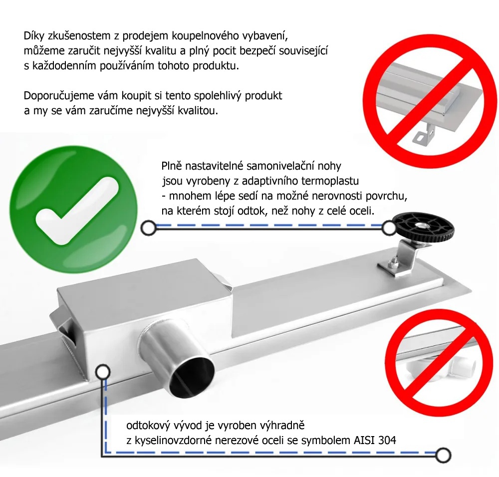 N podlahové žlaby jsou jedněmi z našich nejlepších lineárních odtoků, jsou vyrobeny z vysoce kvalitní nerezové oceli AISI 304. Podlahový žlab je k dispozici ve velikostech, aby dokonale pasoval do vašeho sprchového koutu.