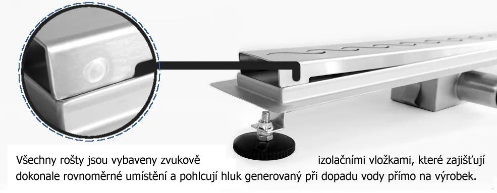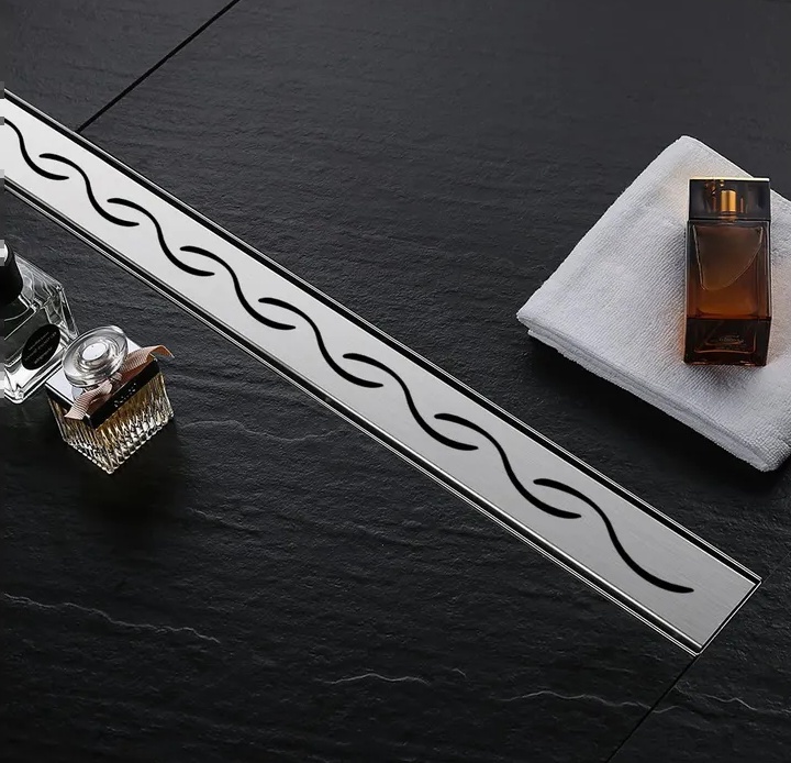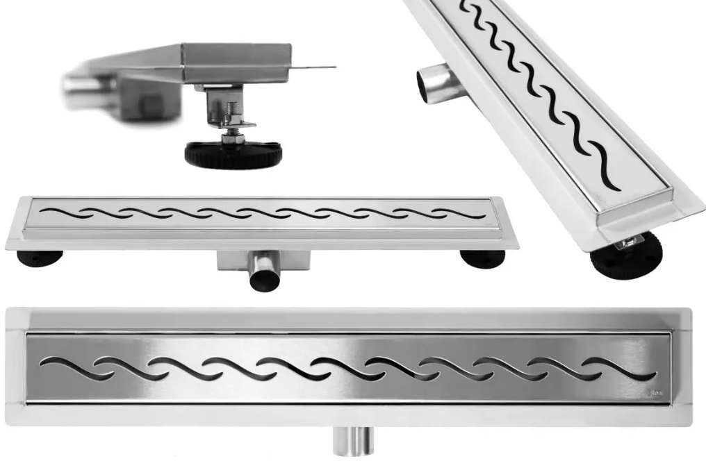 W podlahové žlaby jsou v designu mořských vlnek, jsou vyrobeny z vysoce kvalitní nerezové oceli AISI 304. Podlahový žlab je k dispozici ve velikostech, aby dokonale pasoval do vašeho sprchového koutu.