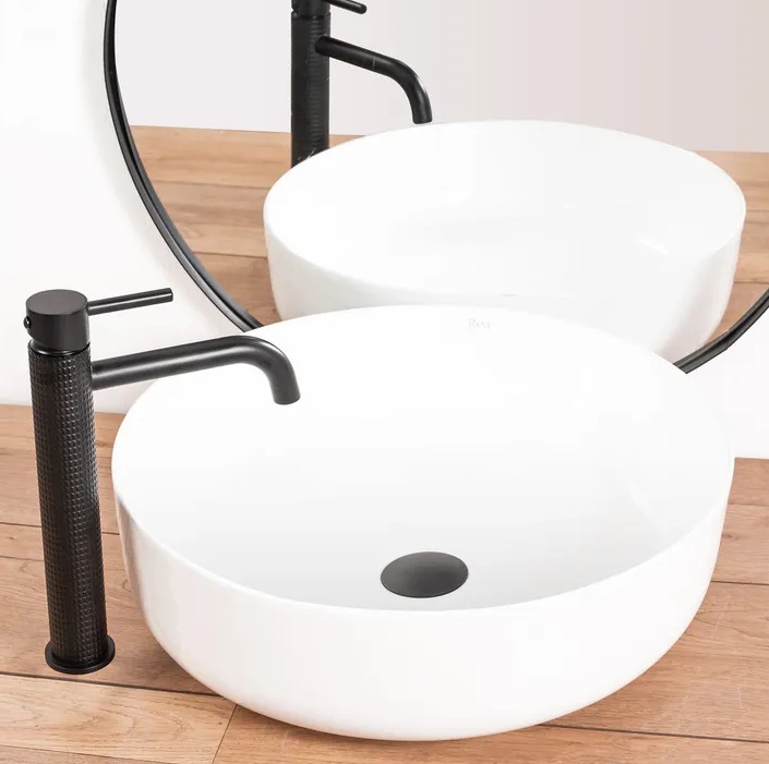 Vodovodní baterie GLADYS KRUDA - to je mosazné tělo obaleno do černého roucha. Díky struktuře působí masivně a drsňácky. Vynikne zejména ve společnosti bílého umyvadla instalovaného na desce nebo na skříňce.