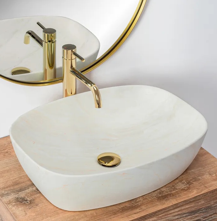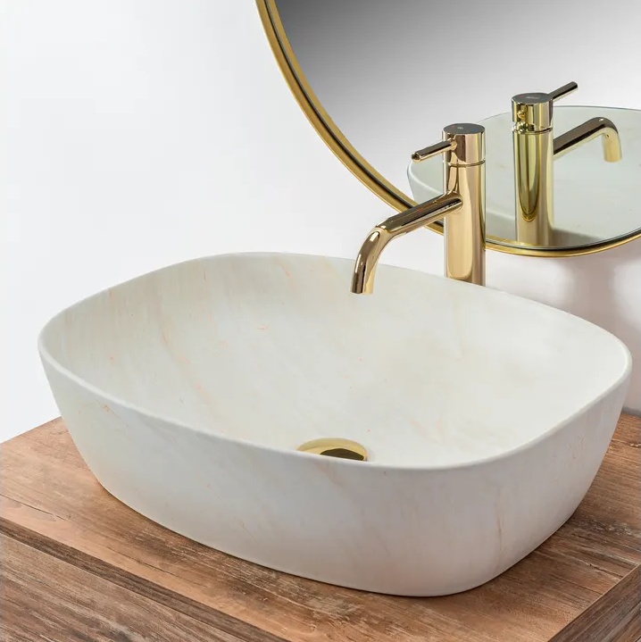 Co se týká barevnosti, zde můžete vybírat ze tří odstínů imitace kamene. Díky technice, kterou byla vyrobena horní vrstva umyvadla, má každý předmět jedinečný vzor.
