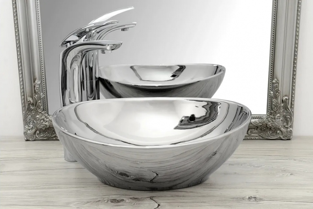 Jako stříbrná kolébka pro královské dítě. Takový je tvar i barva tohoto luxusního umyvadla.