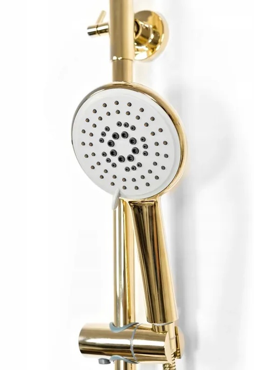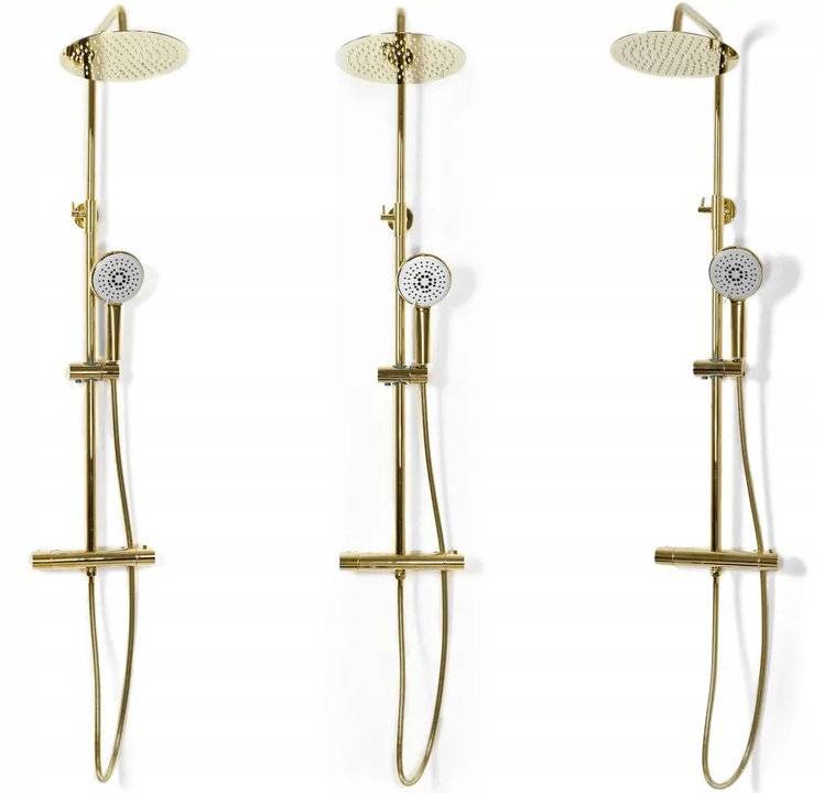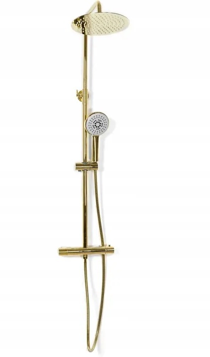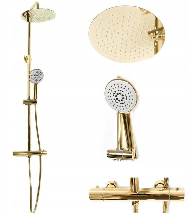 Sprchová souprava s termostatickou vodovodní baterií. Vše sladěno ve zlatém kabátě do exkluzivního stylu.