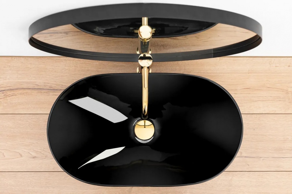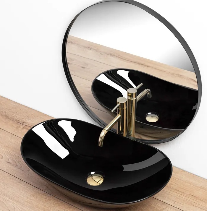 Zvažte možnost kombinace se zlatou vodovodní baterií vysokého provedení a výpustí ve stejné barvě.