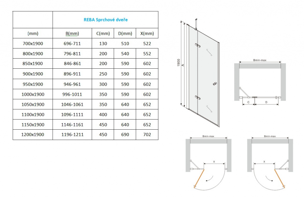 REBA je skvělá volba do koupelen, kde je nouze o místo. Díky pevnému dílu nebude nutné mít volný prostor po celé šířce dveří.