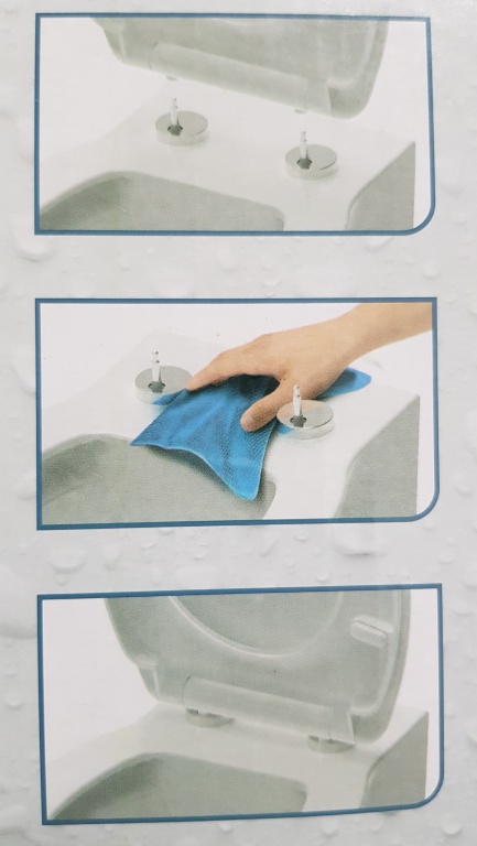 Dále je v zadní části opatřeno panty, které jsou vybaveny samočinným, pomaluspouštěcím mechanismem, zabraňující samovolnému pádu sedací a krycí desky, která je těmito panty spojena se sedací deskou. Tyto panty jsou ve spodní části opatřeny otvory, kterými se nasazuje WC sedátko na připevňovací šrouby a je tak snadno odnímatelné tahem nahoru pro snadné čistění sedátka a keramiky.