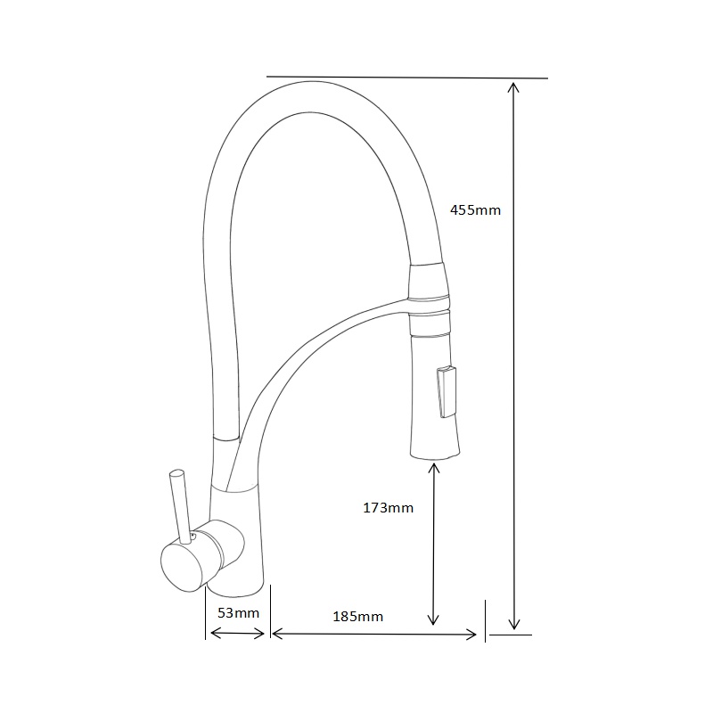 Krásná designová dřezová baterie s gumovou flexibilní hadicí pro pohodlnou manipulaci nejen při opláchnutí dřezu.