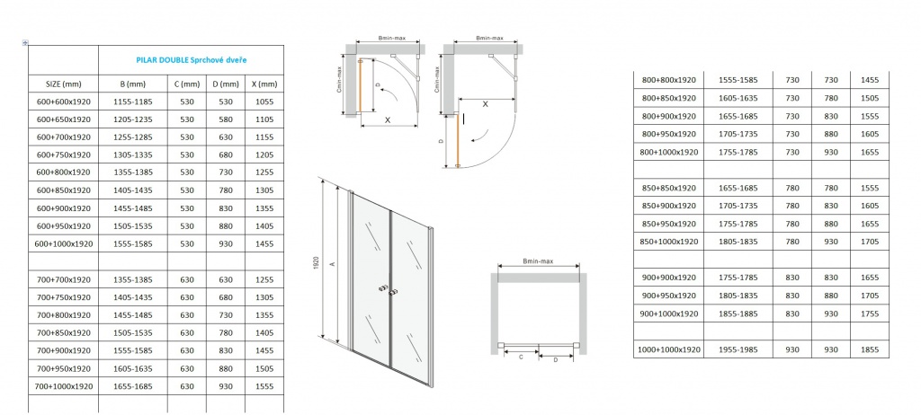 Bytelné panty dveří Pilar umožňují otevřít křídla dveří jak dovnitř tak ven ze sprchového koutu. Díky nastavovacímu profilu je možno dveře instalovat i do ne zcela rovné sprchové niky (rozmezí cca 2 cm).
