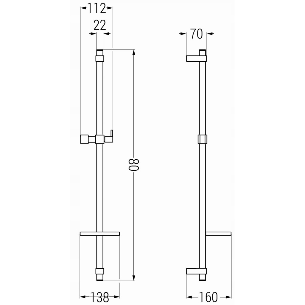 Praktická tyč z odolného materiálu. Elegantní řešení pro Vaši koupelnu, díky posuvnému držáku nastavíte ideální výšku. Součástí tyče je i mýdlenka.
