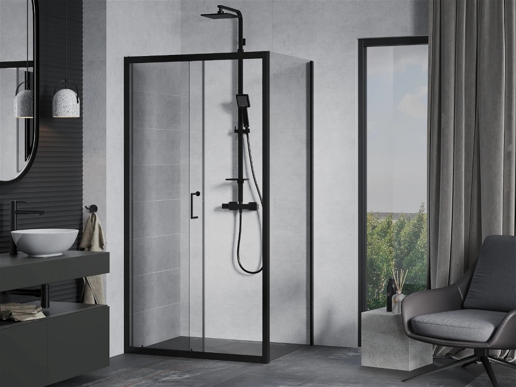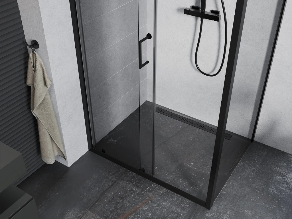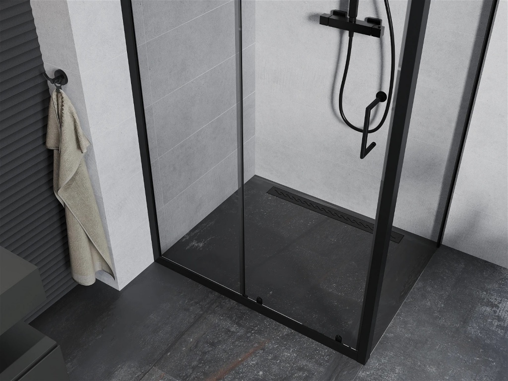 Obdélníková zástěna ADELA COMBI je sestavena ze sprchových posuvných dveří a boční pevné stěny.