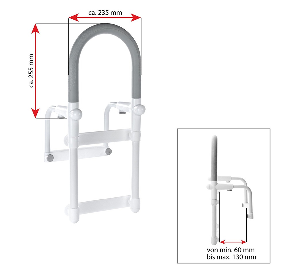 A00300101 Madlo pro vstup do vany je v bílo-šedé kombinaci a je vhodné pro vany s okrajem 6 - 13 cm. Maximální zatížení je 100 kg.