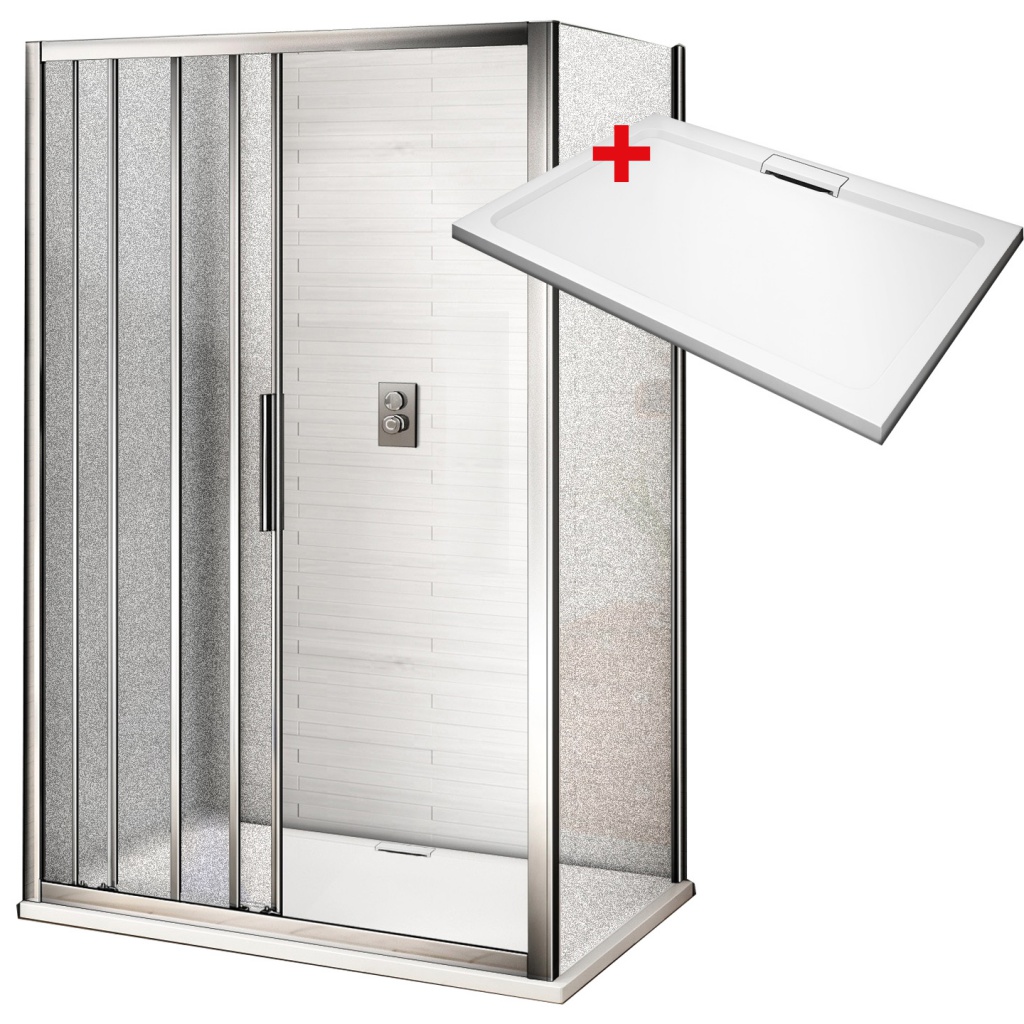 AFTER COMBI 100x90 Clear Sprchový kout s třídílnými posuvnými dveřmi a pevnou bočnicí