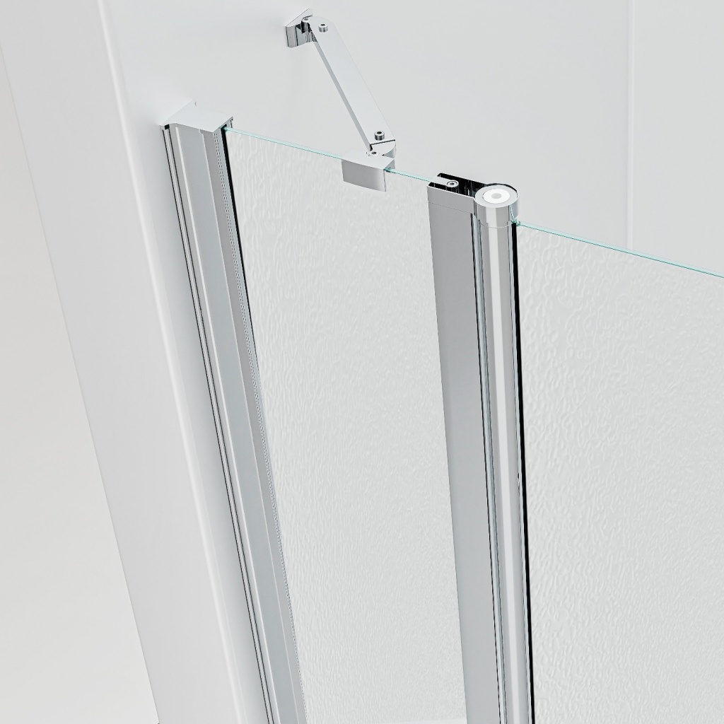 Aby bylo možné využít univerzálnosti dveří, je pevná stěna cca o 2 cm vyšší než dveřní sklo.
