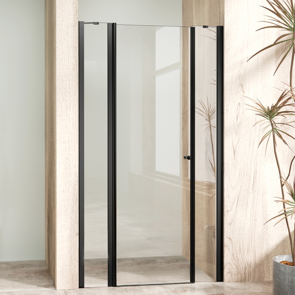 ALFA LINE II Black 115 Čiré Sprchové dveře jednokřídlé s pevnými stěnami v rovině WellMall