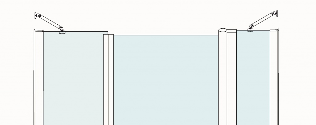 Aby bylo možné využít univerzálnosti dveří, jsou pevné stěny cca o 2 cm vyšší než dveřní sklo.