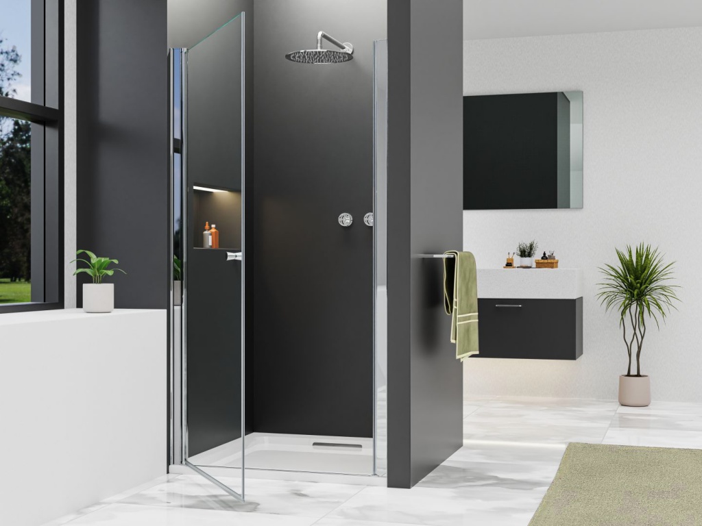 Otevírání sprchových dveří Alfa je směrem do koupelny až do úhlu 90°.