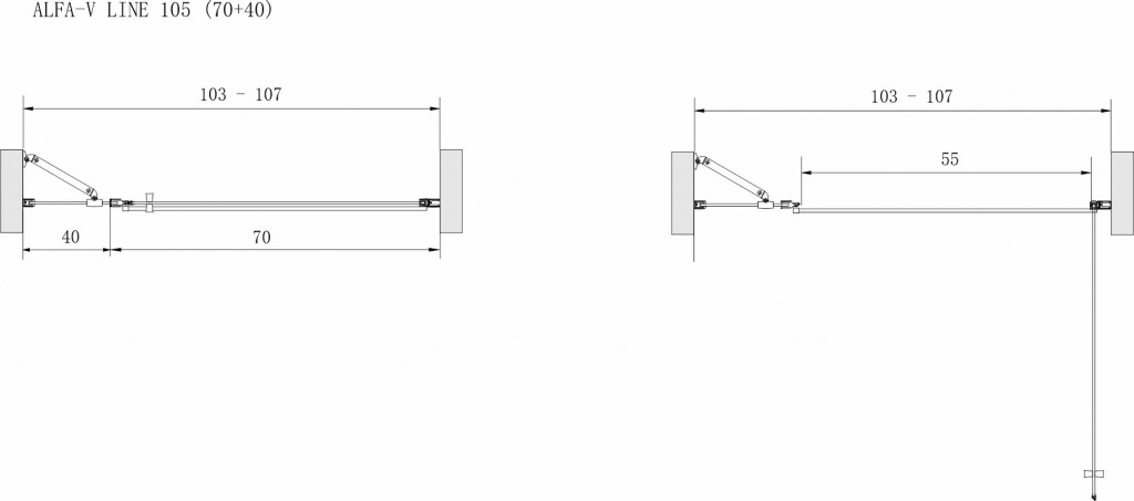 ALFA-V LINE Black 105 Čiré Sprchové dveře jednokřídlé s pevnou stěnou v rovině (70+40) WellMall