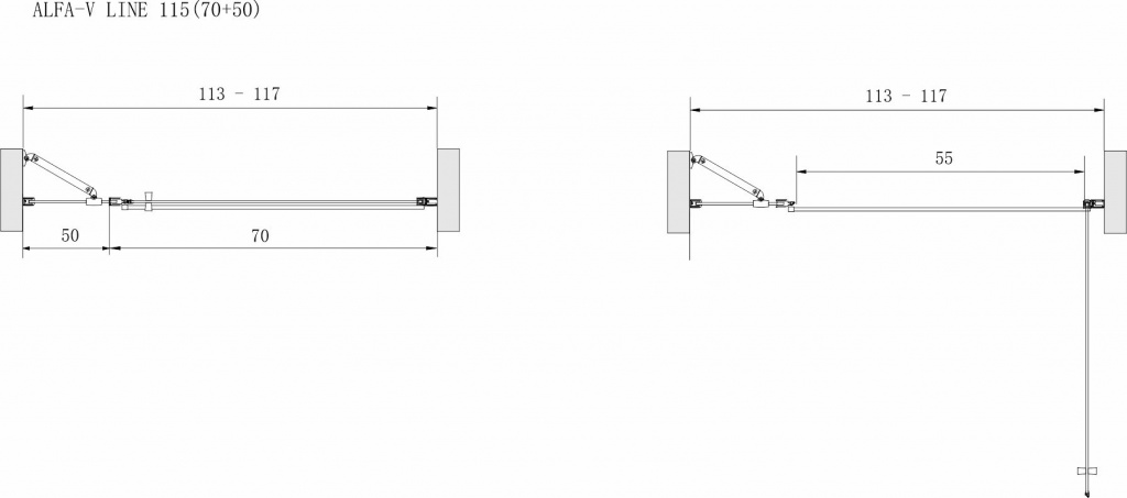 ALFA-V LINE Black 115 Čiré Sprchové dveře jednokřídlé s pevnou stěnou v rovině (70+50) WellMall