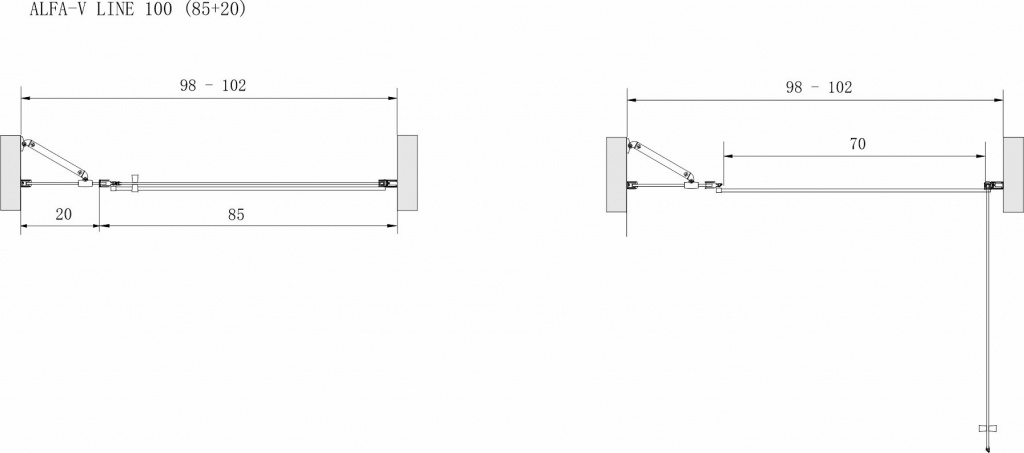 ALFA-V LINE Chrom 100 Čiré Sprchové dveře jednokřídlé s pevnou stěnou v rovině (85+20) WellMall