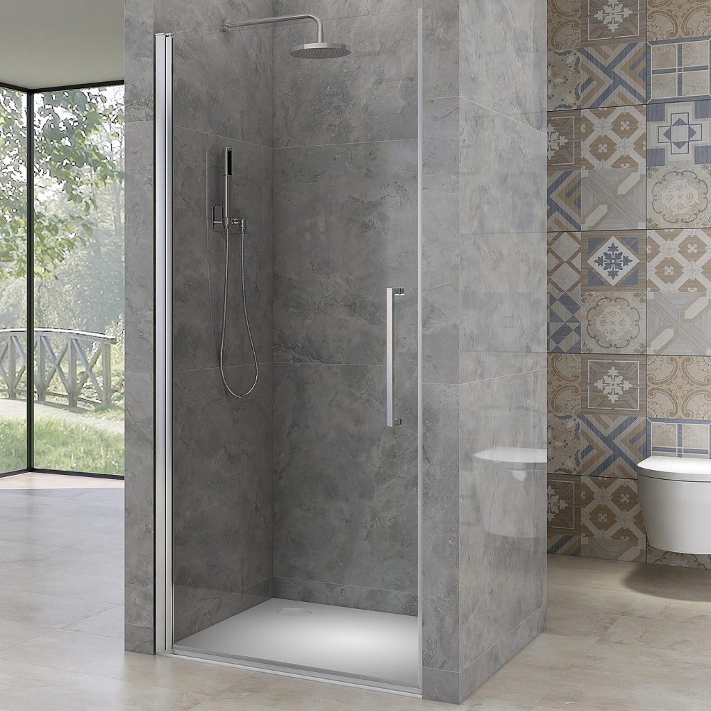 Spojením minimalismu a moderního vzhledu vznikou perfektní sprchové dveře. Navíc ve spojení s bezrámovým provedením vnesou do vaší koupelny nádech čistoty. Takové jsou jednokřídlé otevírací sprchové dveře AVER.