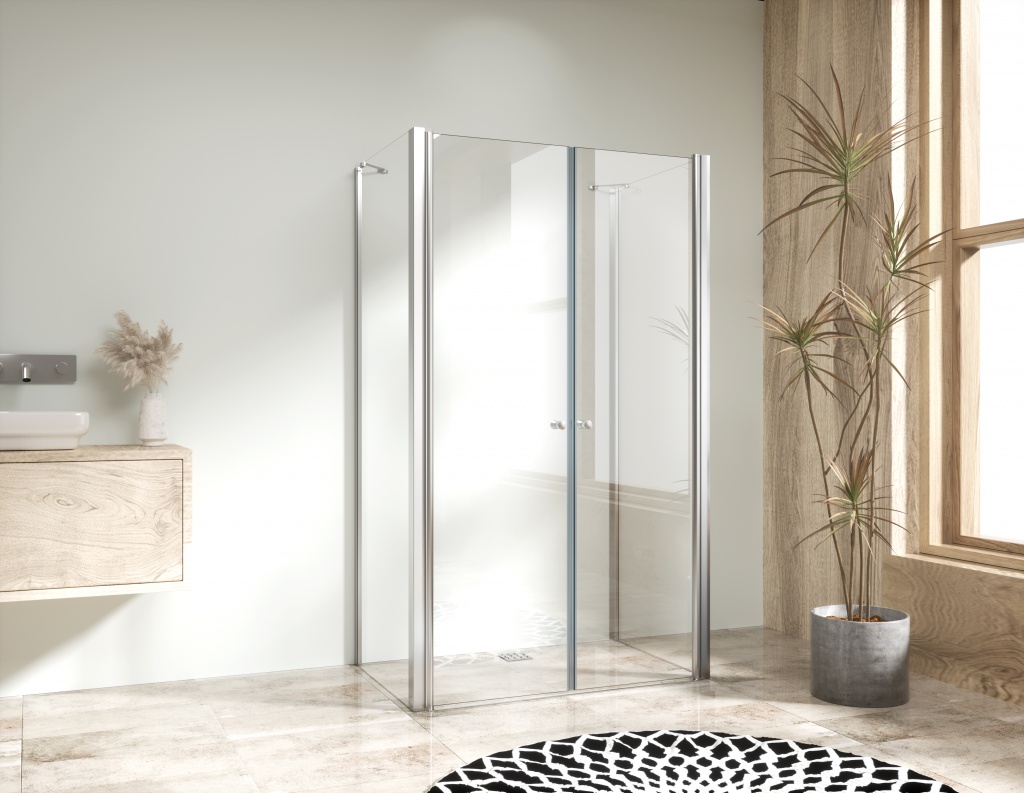 Jasnou výhodou tohoto koutu jsou rozdělená křídla dveří. Při otevírání ven nezasahují tolik do prostoru koupelny a umožňují je otevírat i dovnitř sprchového koutu (lítačky).