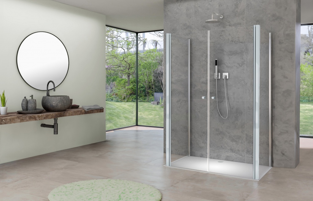 Jasnou výhodou tohoto koutu jsou rozdělená křídla dveří. Při otevírání ven nezasahují tolik do prostoru koupelny a umožňují je otevírat i dovnitř sprchového koutu (lítačky).