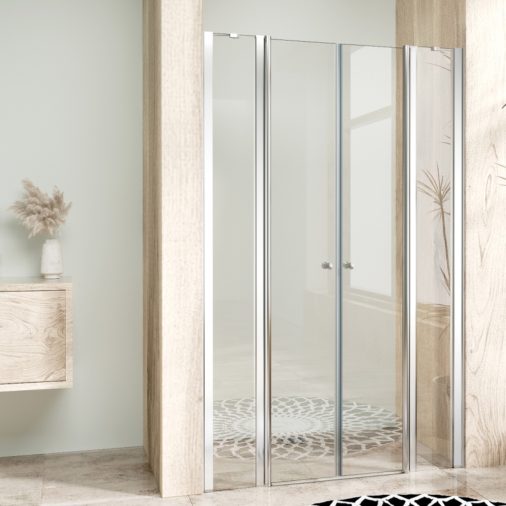 BETA LINE II Chrom 110 Čiré Sprchové dveře dvoukřídlé s pevnými stěnami v rovině WellMall