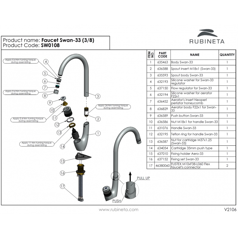 Dřezová baterie SWAN-33 Chrom Rubineta