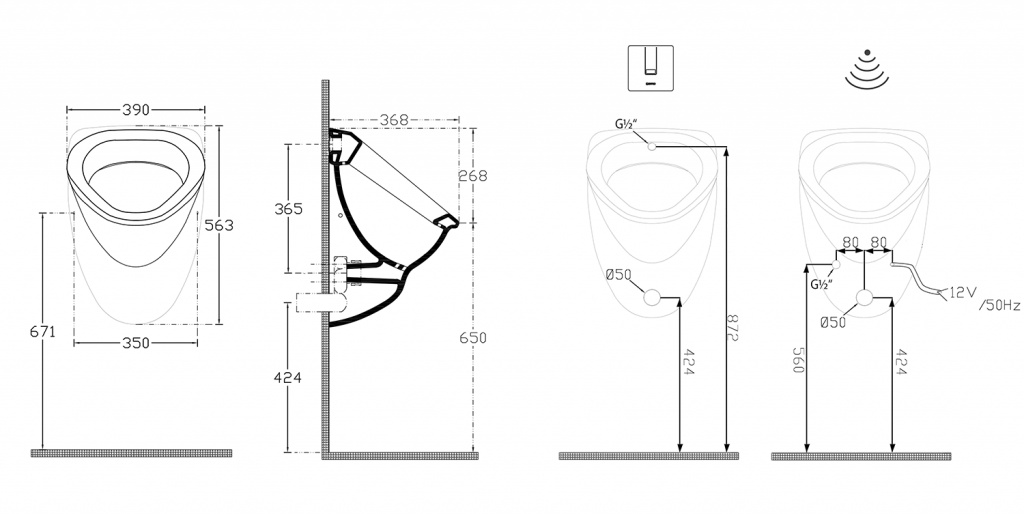 • DYNASTY urinál se zakrytým přívodem vody, 39x58 cm