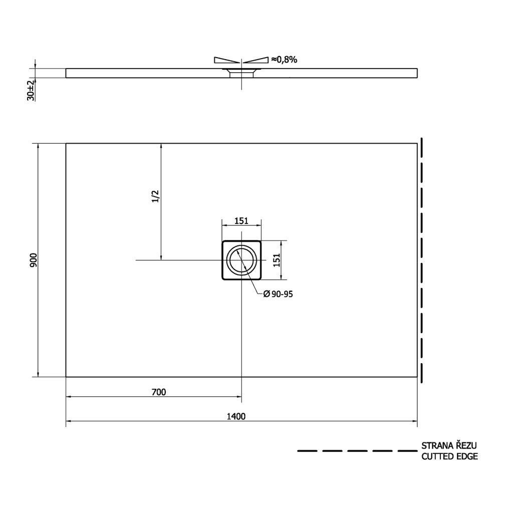 - Sprchovou vaničku je možné řezem upravit na požadovaný rozměr. Řez vaničkou FLEXIA musí být rovný (krácení, úkosy, výřezy), nelze řezat do rádiusu (oblouky).
