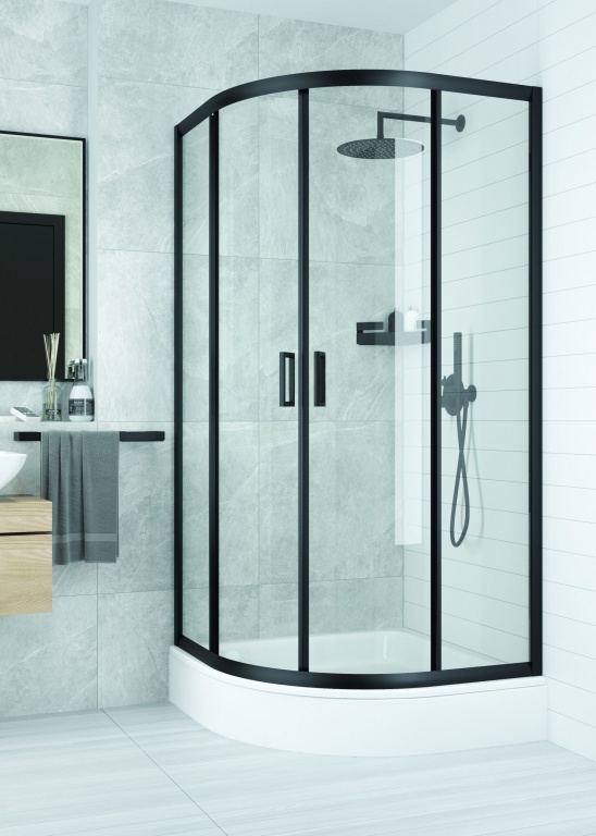 ČERNÝ rám v kombinaci s 5 mm bezpečnostním sklem v Čirém provedení udělá z vaší koupelny krásnou moderní místnost.