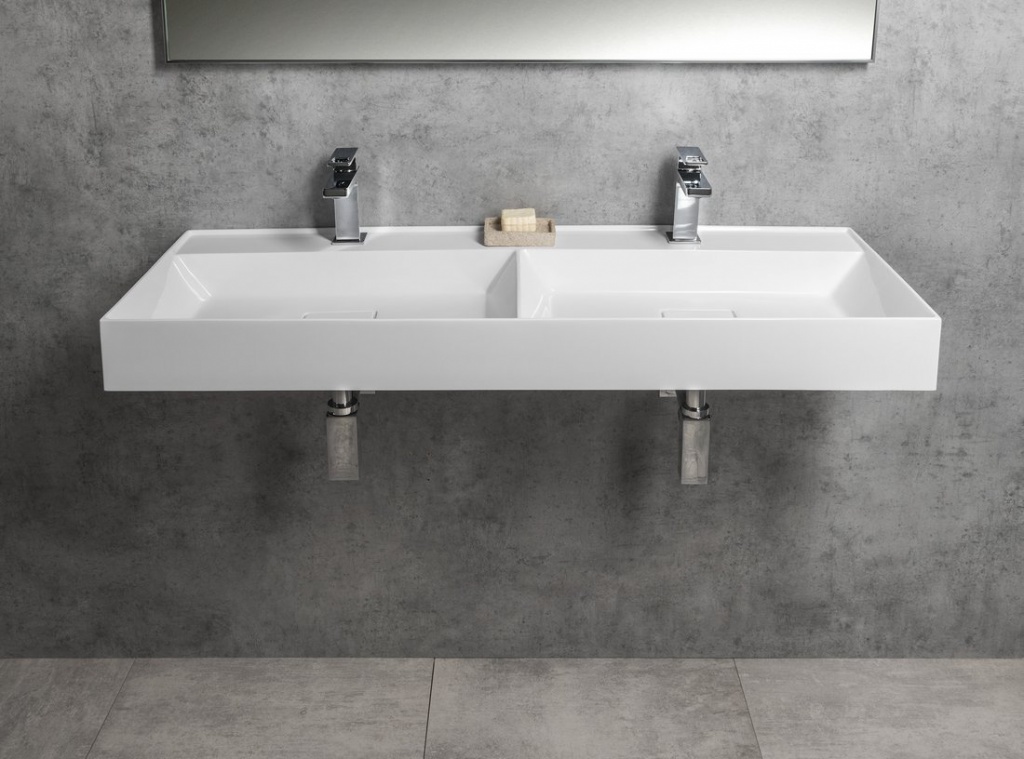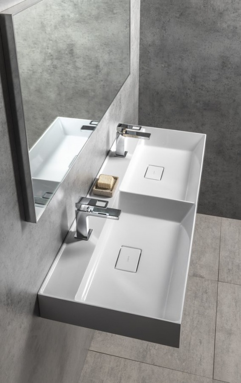 Dvojumyvadlo GODIVA z litého mramoru je vhodné pro instalaci do nábytku ODETTA nebo k samostatnému připevnění na zeď.