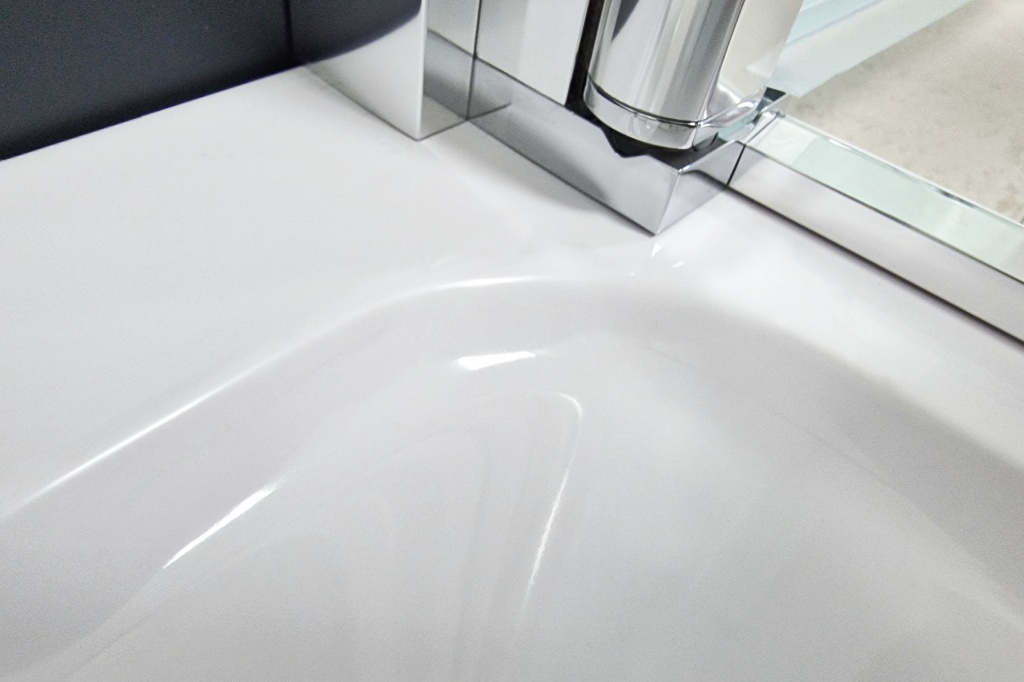 Precizní povrch vaničky bez zbytečných míst, kde se hromadí voda mimo odtokový prostor.