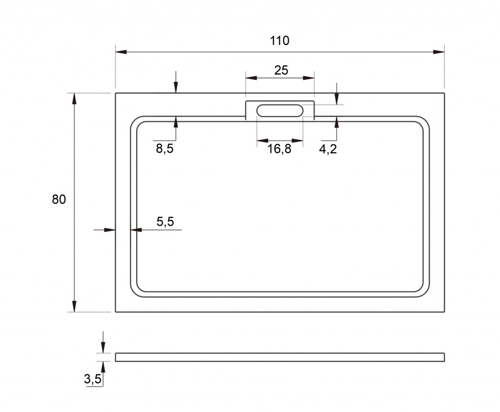 HARD 110x80x3,5 obdélníková mramorová vanička WellMall