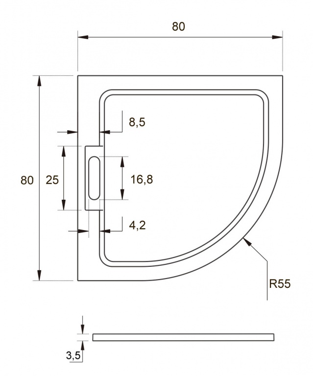 Vaničky HARD vhodné pro sprchové čtvrtkruhové zástěny (rádius R55) o velikosti 80 x 80 cm např.: POINT, DOVER či FUNY...