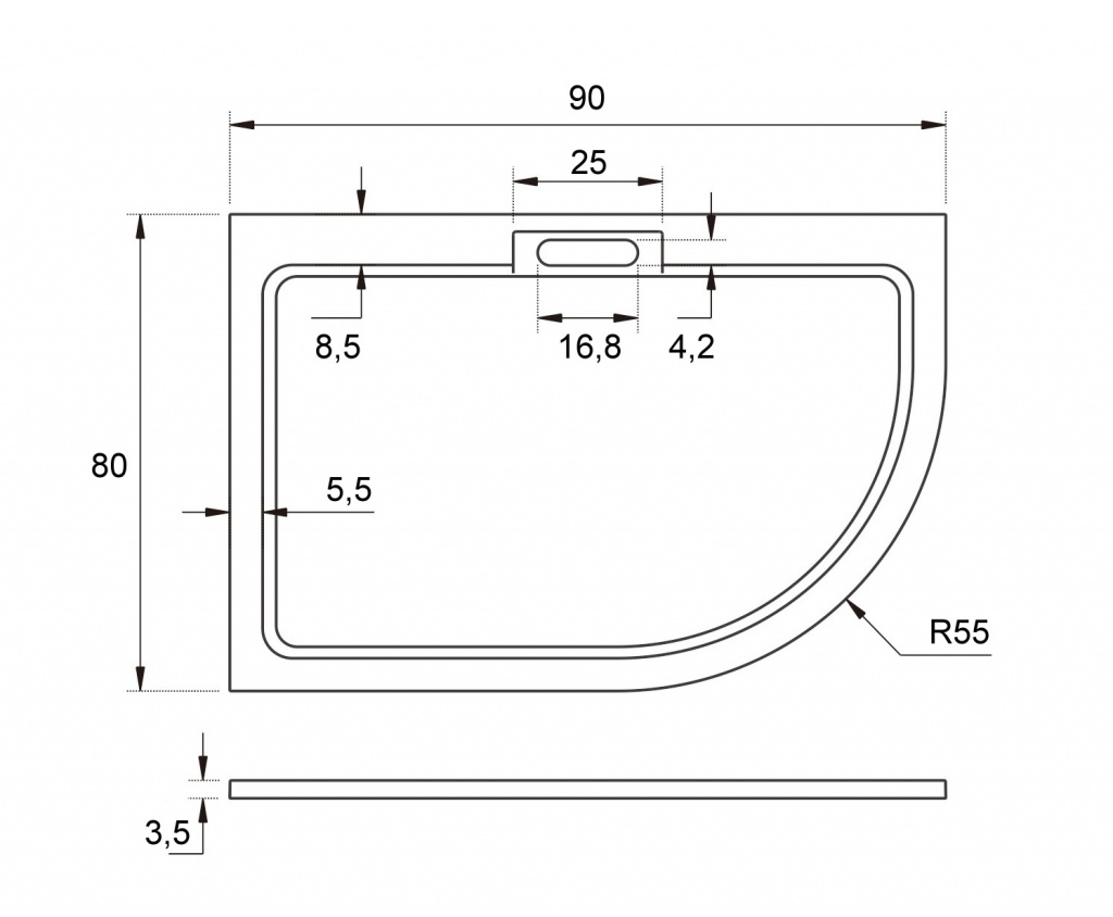 Vaničky HARD vhodné pro sprchové asymetrické zástěny o velikosti 90 x 80 cm např.: NATALI