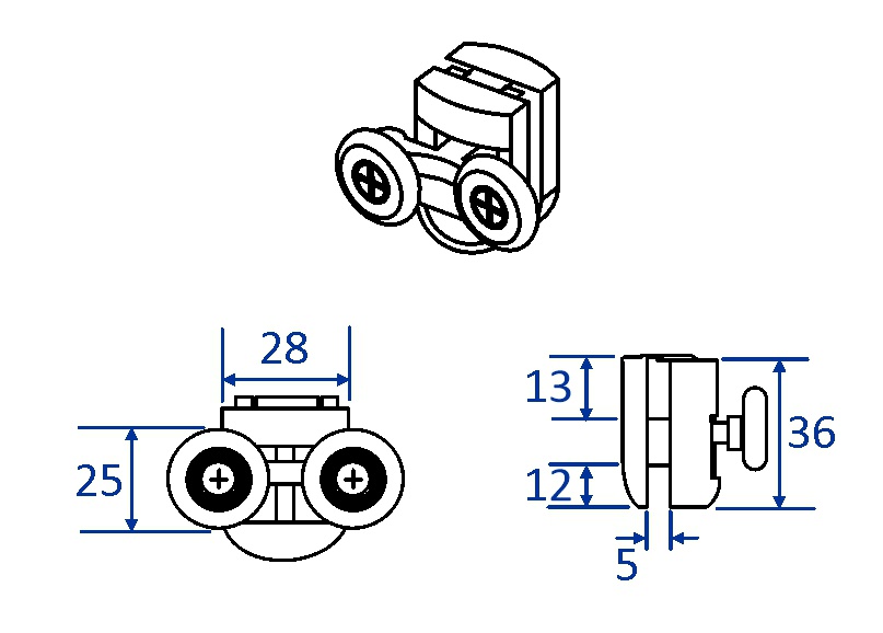 Horní pojezdové dvojkolečko pro posuvné sprchové dveře.