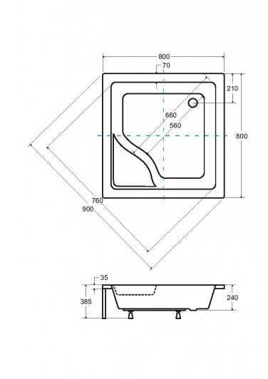 Sprchová vanička IGOR je určena ke čtvercovým zástěnám 80x80 a 90x90 cm. Sprchovou vaničku je možné osadit s akrylátovým čelním panelem, nebo je ji možné obezdít.