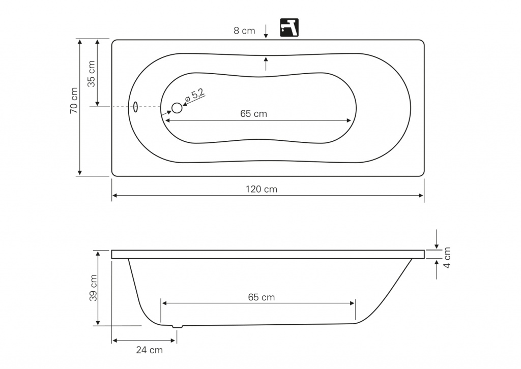 JIZERA vana 120x70x39cm, bez nožiček, bílá Aqualine