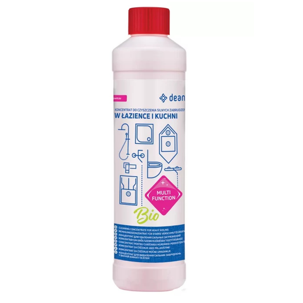 Koncentrovaný přípravek určený pro důkladné čištění silných nečistot v koupelně a kuchyni. Odstraňuje rez, vodní kámen, mastnotu...
